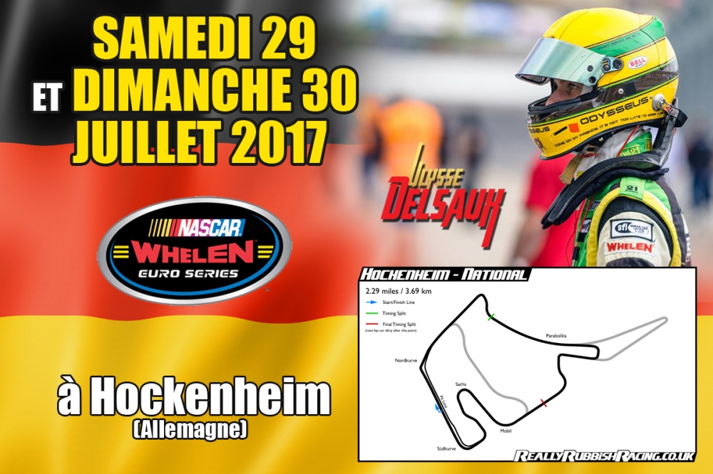 Samedi 29 et dimanche 30 juillet, retrouvez Ulysse en Allemagne sur le circuit de Hockenheim pour les Rounds 7 et 8 du championnat Européen NASCAR. retrouvez les courses en direct sur le Facebook Live de la Nascar Whelene Euro Series.